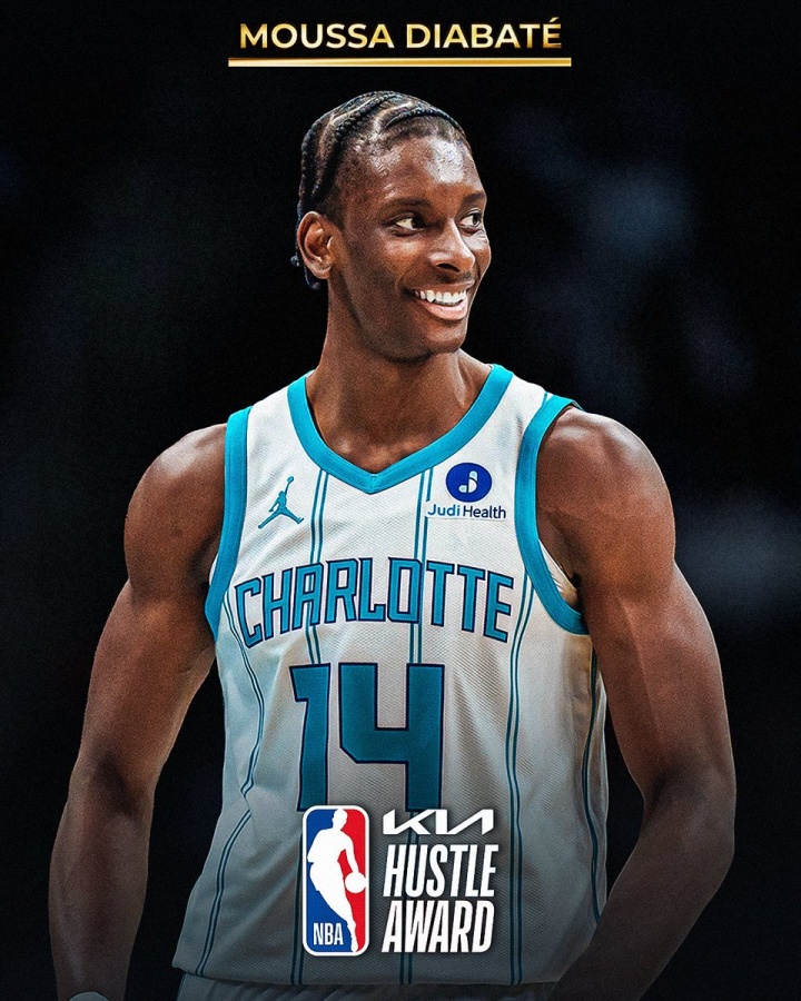 5月1日讯 NBA官方宣布,黄蜂前锋穆萨·迪亚巴特荣获本赛季NBA常规赛最佳拼搏奖。
