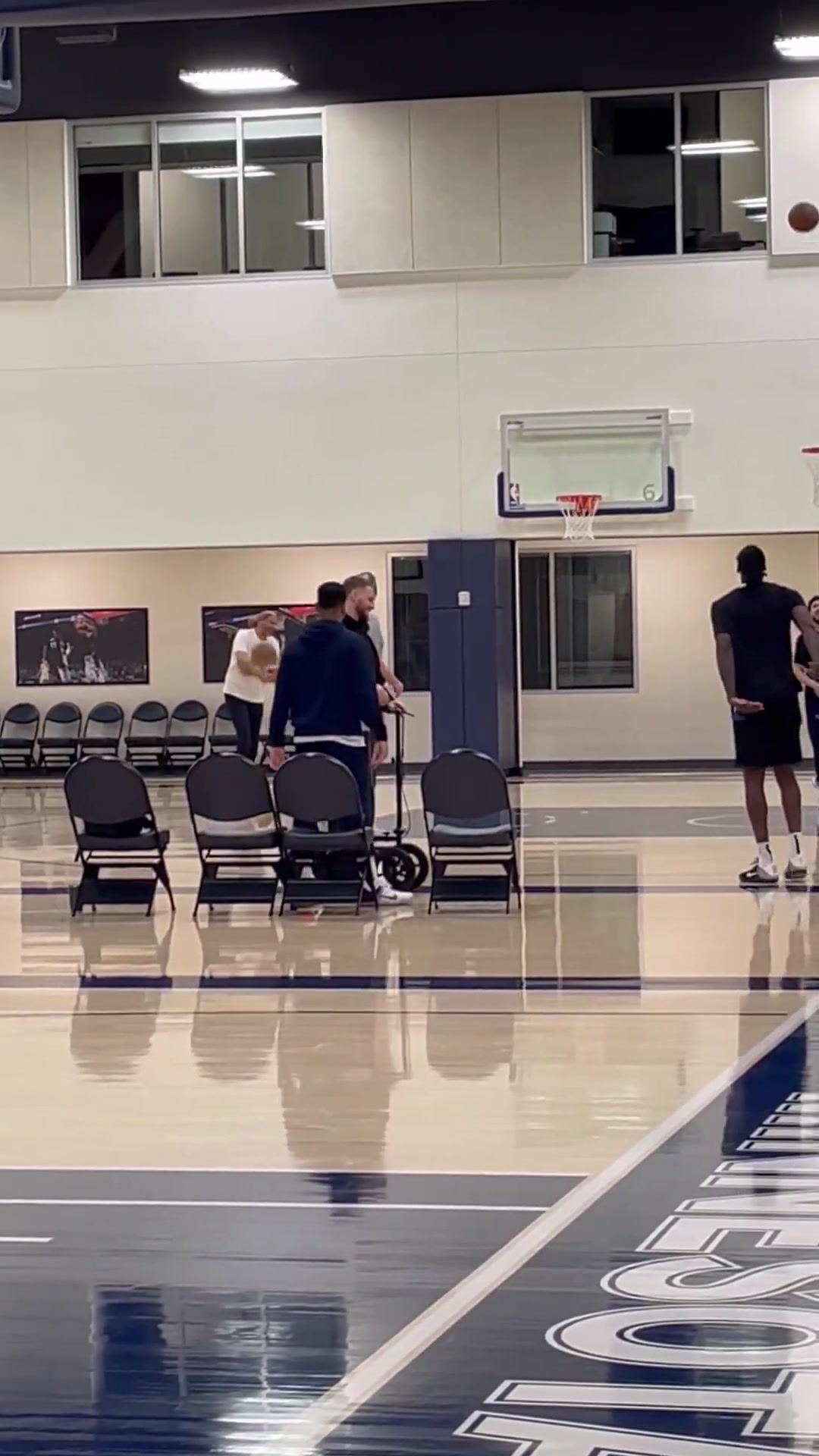 此前跟腱受伤的迪文岑佐今天也来到训练馆看望队友,给队友加油鼓劲。